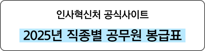 아래는 2025년 공무원 직종, 직급별 봉급표를 확인 할 수 있는 인사혁신처 공식사이트 링크입니다.