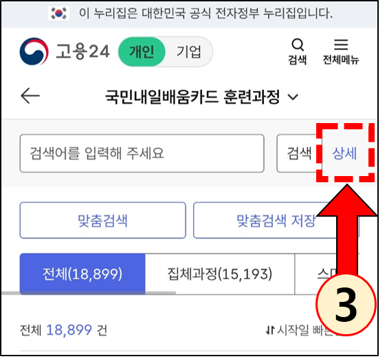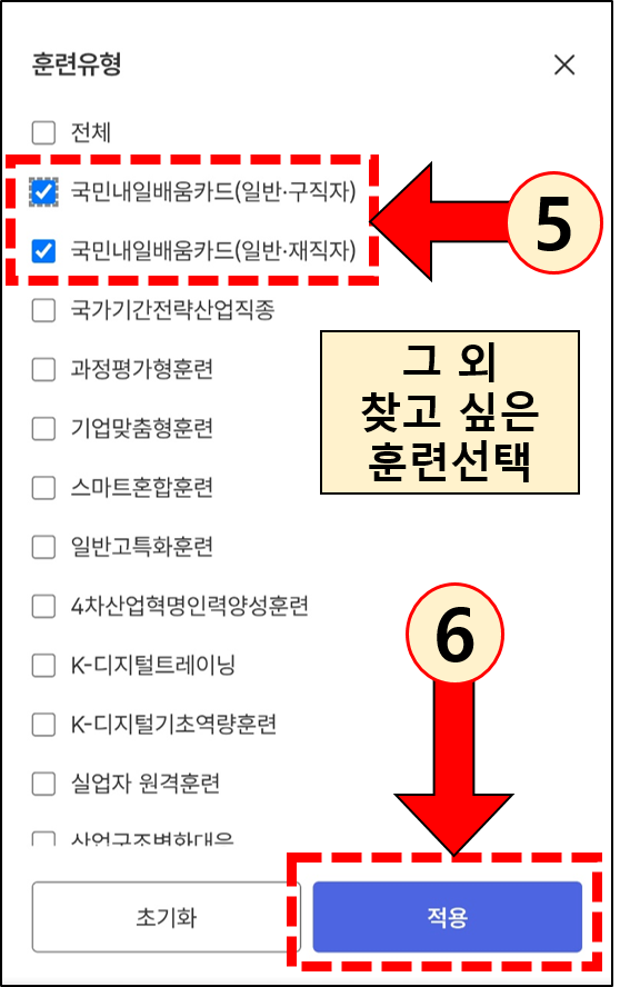 - > 찾고 싶은 훈련과정 선택 후 적용