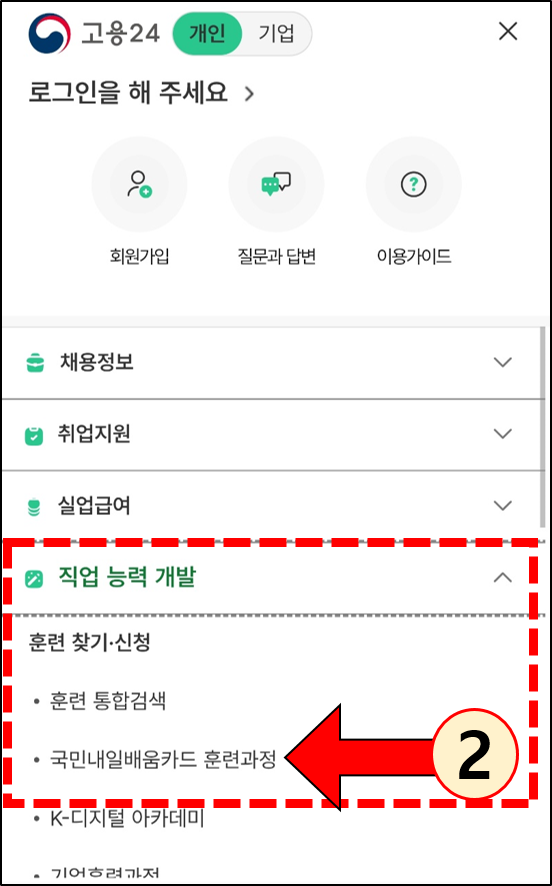 - > [직업 능력 개발] - [국민내일배움카드 훈련과정]