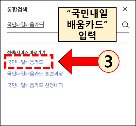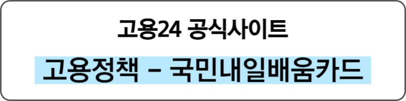 - [고용24] - [정책/제도] - [검색] - ["국민내일배움카드" 입력] - [정책/서비스 바로가기 국민내일배움카드]