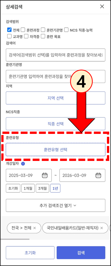 • > 찾고 싶은 훈련과정 선택 후 적용