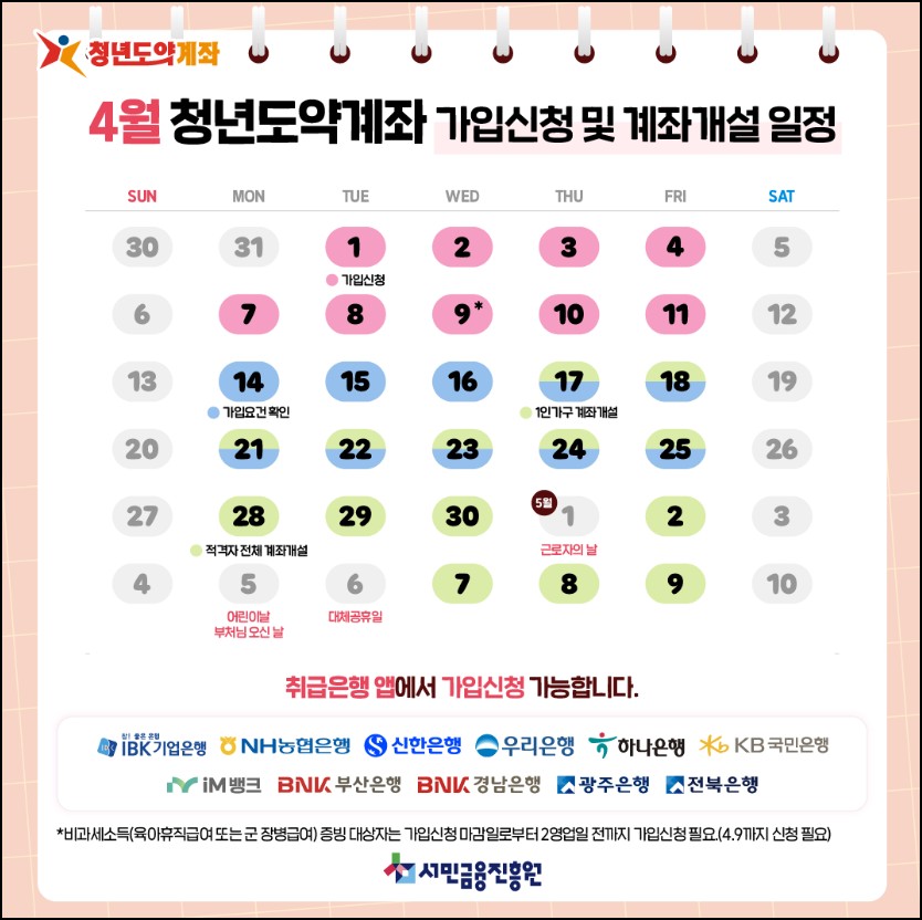 2025년 4월 청년도약계좌 신청 및 계좌 개설 일정